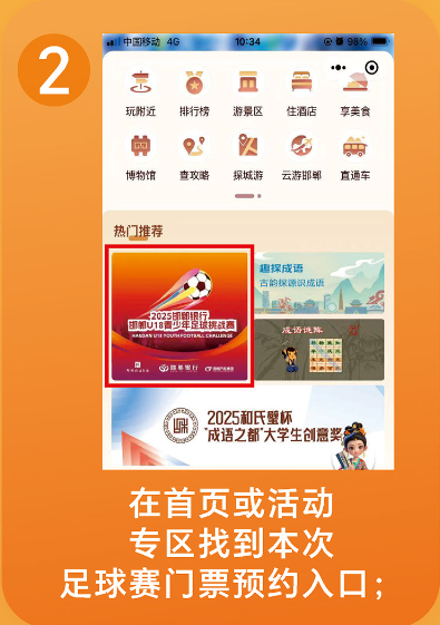 找到“邯郸U18青少年足球挑战赛”预约界面